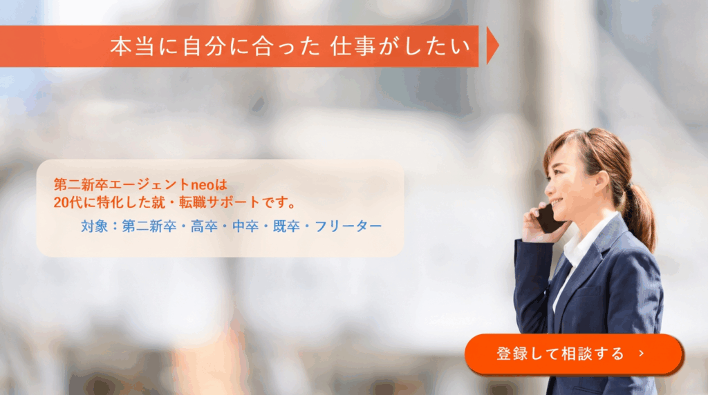 「初めての転職で何から始めればいいかわからない」「本当に転職すべきか迷っている」という方には、第二新卒エージェントneoがおすすめです。